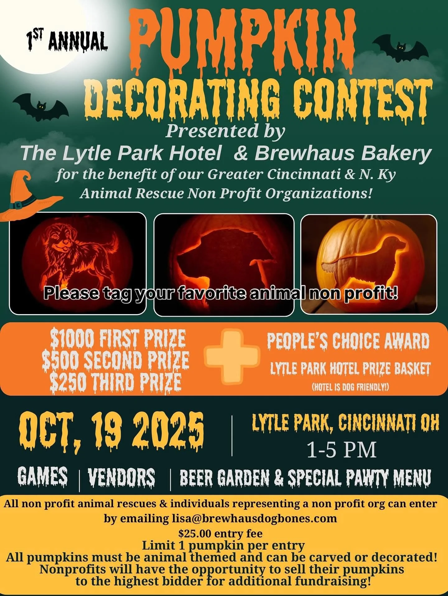 Oct 19 Pumpkin Decorating Contest Sunday, October 19, 2025 1:00 PM 5:00 PM Lytle Park (map) Google Calendar ICS View Event →