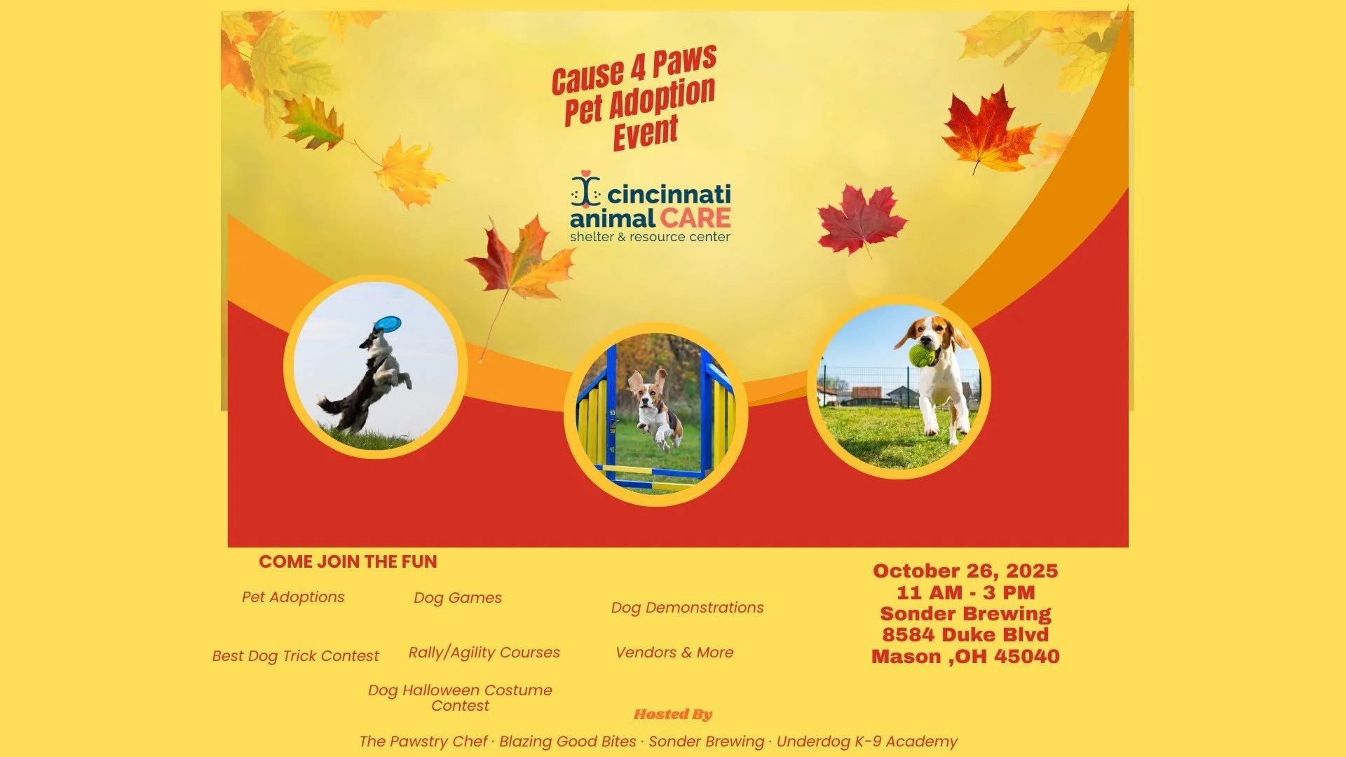 Oct 26 Cause 4 Paws Sunday, October 26, 2025 11:00 AM 3:00 PM Sonder Brewing (map) Google Calendar ICS View Event →